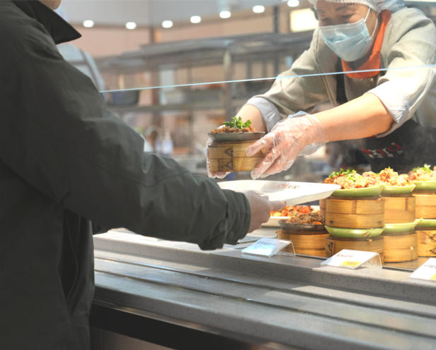 餐厅面积: 2000平米 餐位数: 800个 就餐人员: 近3000人次